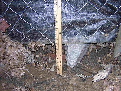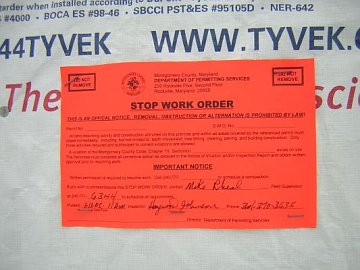 In October, we called the Department of Permitting Services (DPS) about our concerns about how the fence was installed, but the complaint fell between the cracks and was not investigated. We called again in January after the gap in the sediment fence had grown to 7". Immediately (within hours), a DPS inspector came out and issued a Stop Work Order for numerous violations