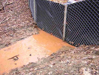 | Standing tall like sentries, the sediment fence watches as the sediment goes by. | |