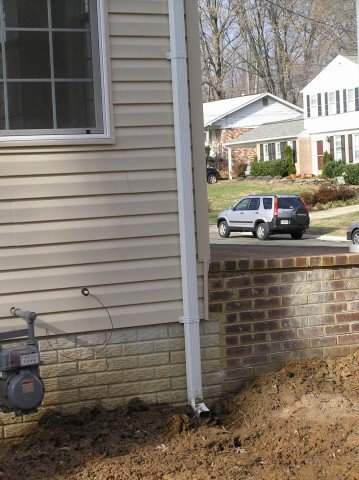 The approved stormwater plans shows this leader going underground to a drywell.