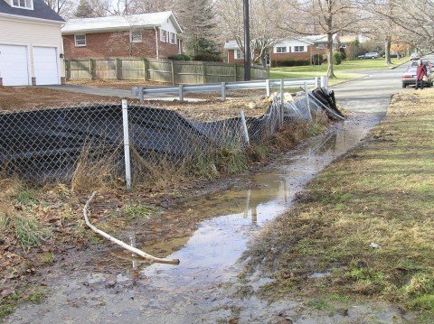 The builder installed a sediment fence in the intermittent stream that ran adjacent to the lot. The stormwater runoff from the community upland of the site rushed through the ephemeral stream and into the sediment fence. It did not take long before a gap eroded beneath the sediment fence in the stream bed sending, reddish brown runoff into the headwaters of Sligo Creek every time it rained.