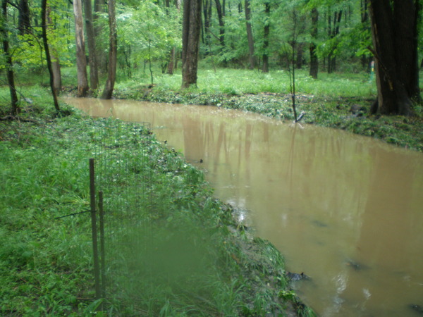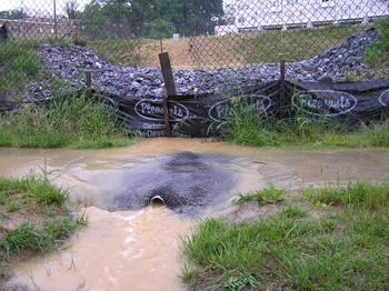 Sediment from the construction site, which had been stripped bare of ground cover, ran off with each rain for many months (since at least January 2009). The silt fences within the construction site were either down or non-existent. The silt fence around the construction site was not being maintained. Holes and tears could be found along the perimeter and muddy water poured out of them.