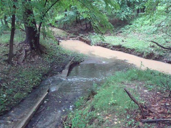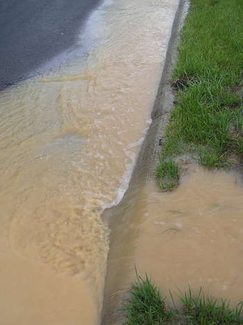 Department of Permitting Services (DPS) inspectors referred to the run-off as being 'discolored'. They also stated they were not very concerned about the sediment filled runoff since about a mile down stream are the University Blvd stormwater ponds (below Kemp Mill Plaza) which the DPS inspector referred to erroneously as a 'filtration basin'.