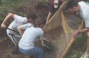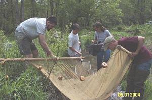Earlier that morning, Keith VanNess, Senior Aquatic Specialist for Montgomery County and four of his staff had left in a caravan of trucks with 11 members of Friends of Sligo Creek. Equipped with waders, nets and plastic drums with air bubblers, they were off to nearby Northwest Branch in search of the Creek's former residents to bring them to Sligo.