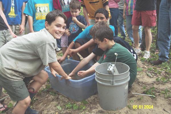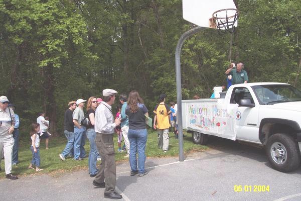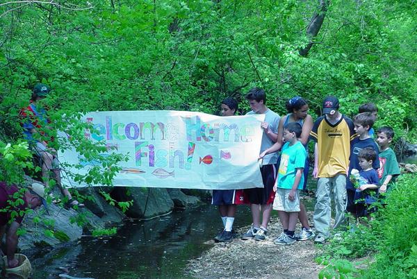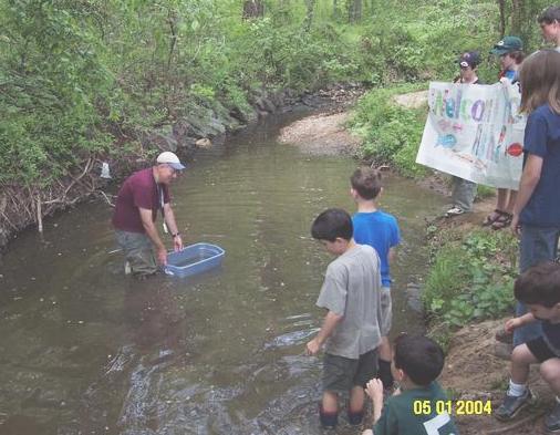 Saturday May 1, 2004 about 11:00 a.m., members of Friends of Sligo Creek, children from nearby schools, and others began gathering at the Dennis Avenue Recreation Center on Sligo Creek Parkway. They were there to welcome home the fish.