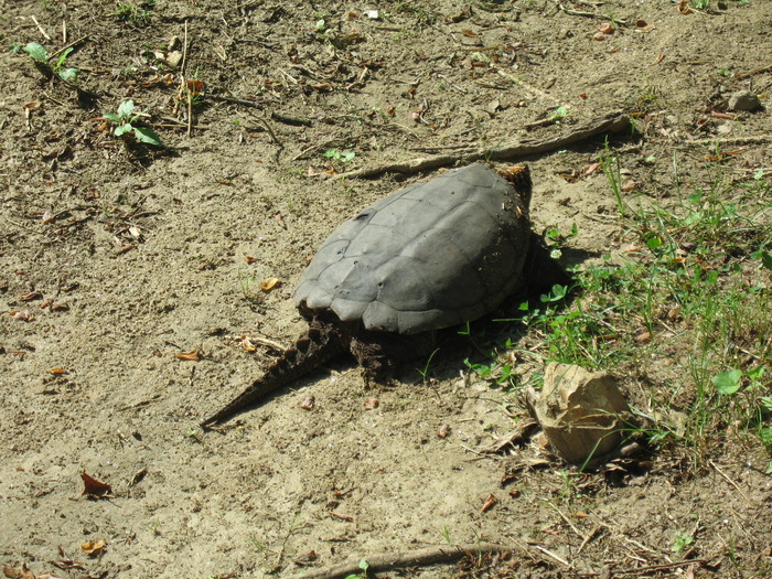 By then we had had plenty of time to study her, and indeed, she was a common snapping turtle (Chelydra serpentine), the only large species in Sligo Creek. When the park naturalist, Bill Hamilton, arrived, he felt that trying to move the eggs would do more harm than good, and so, they are where their mother meant for them to be.
