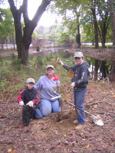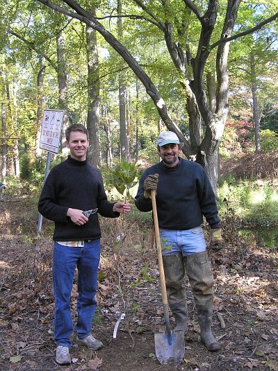 In 2005, FoSC was involved in efforts to increase the riparian forest buffer along Sligo Creek near Forest Glen Road. Increasing the amount of riparian forest buffer is critical to our efforts to increase Sligo Creek's water quality. On Oct 29, 2005 Friends of Sligo Creek joined M-NCPPC and COG in a Tree Planting Work Day along the constructed wetlands near Forest Glen Road. Earlier in the year, much of the area was choked with invasive plants. Before the workday, Parks employees came through and sprayed with herbicides and bush hogged the area. On the workday, thirty volunteers planted 250 trees and shrubs.