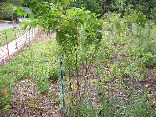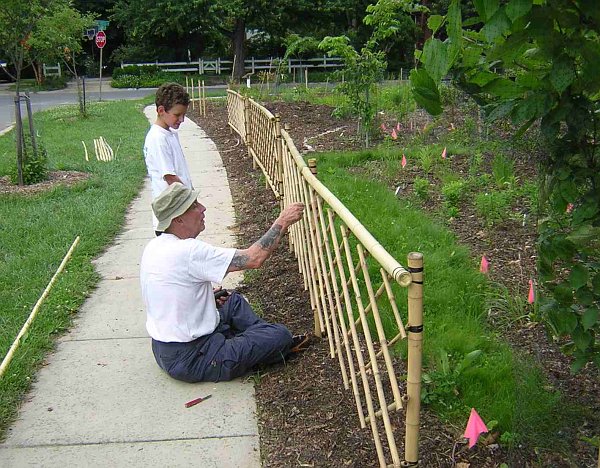 A new feature at the park has been the bamboo fence. In June Clair Garman was a great help in installing it. Like a picture, this bamboo "frame" really completes the garden. We have noticed that by leaving large gaps in the bamboo fence, the garden now has a more inviting look. More of the neighbors have been coming into the park to admire the garden.