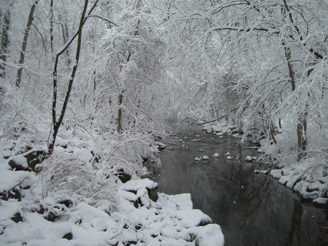 Snow covered creek banks