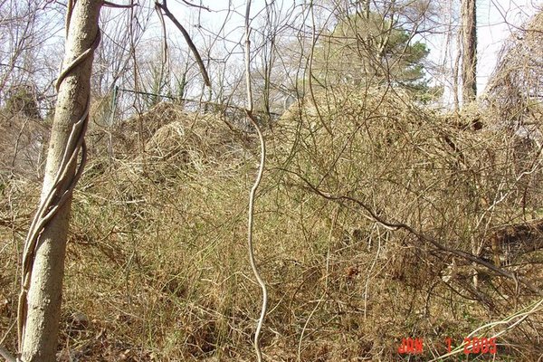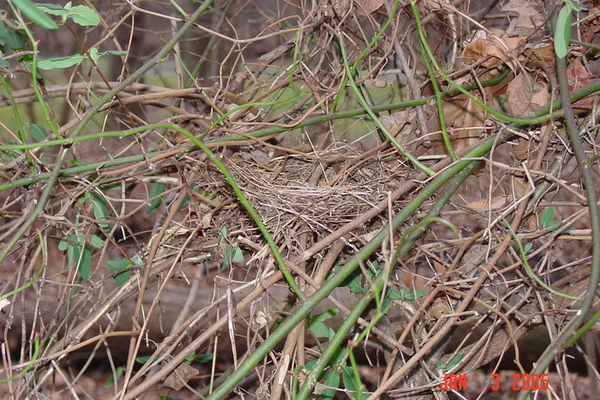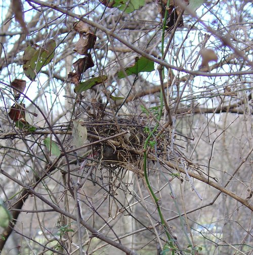 Nest with multiflora rose, porcelainberry, and probably mulberry. Feb. 2, 2005, along Flora Lane