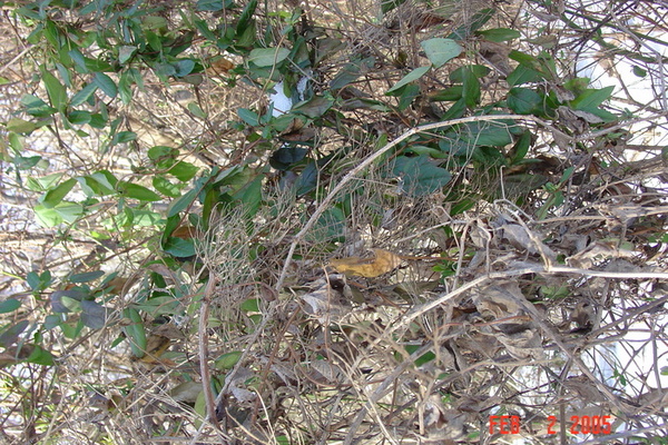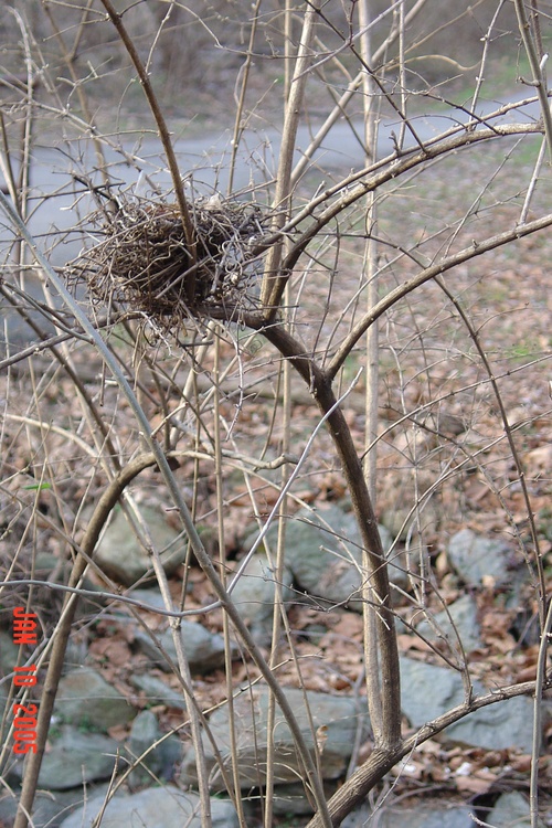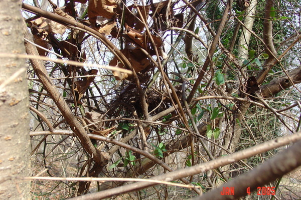 Nest in bush honeysuckle & other, Jan 10, 2005, Flora Lane