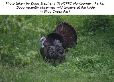 At the same time, please let us know about your Wild Turkey sightings in Sligo Creek Park by responding to this article. If you remember the date, location, or have a photo, please share that info as well. Don’t forget to report your wild turkey sightings on the "Sightings" page of the Friends of Sligo Creek website.