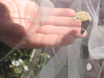 The gorgeous Buckeye was one of the kids' first catches of the day. Frank called this species a real "wow" butterfly because of the dramatic false "eyes" on its wings.