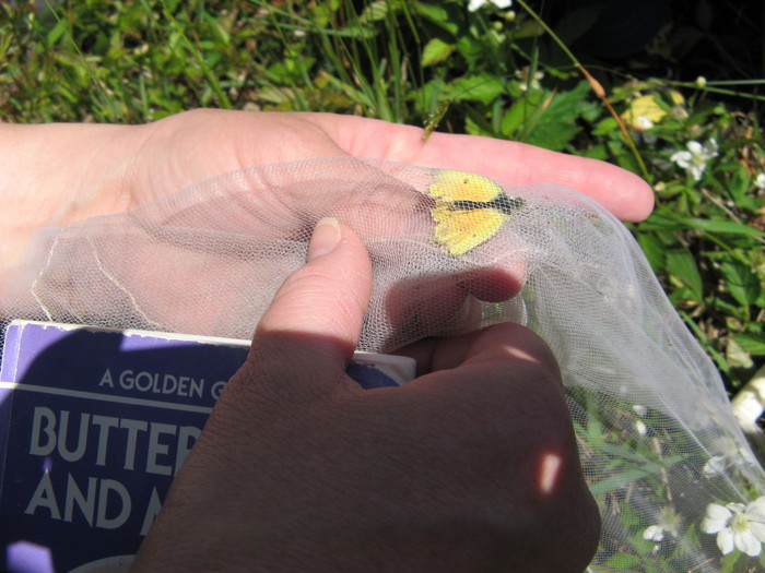 Another good catch was an Orange Sulphur, which Frank helped us distinguish from the yellower Clouded Sulphurs we'd seen earlier.