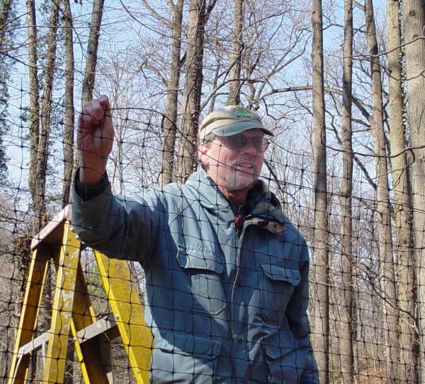 Bruce Sidwell runs the wire at exclosure Alpha.