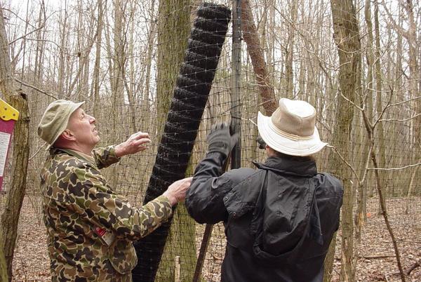 Clair Garman and Steve Smith tie up the trailing end at exclosure Bravo.