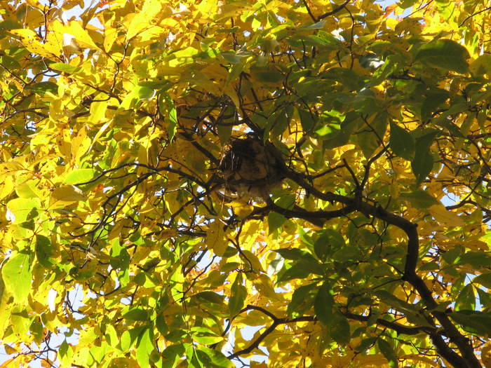 In no time, we spotted an abandoned bird's nest about 20 feet up in a hickory tree. Frank speculated that it could be a robin's. The average height of a robin's nest in DC and Maryland is 13 feet, though it ranges considerably from 1 to 60 ft.