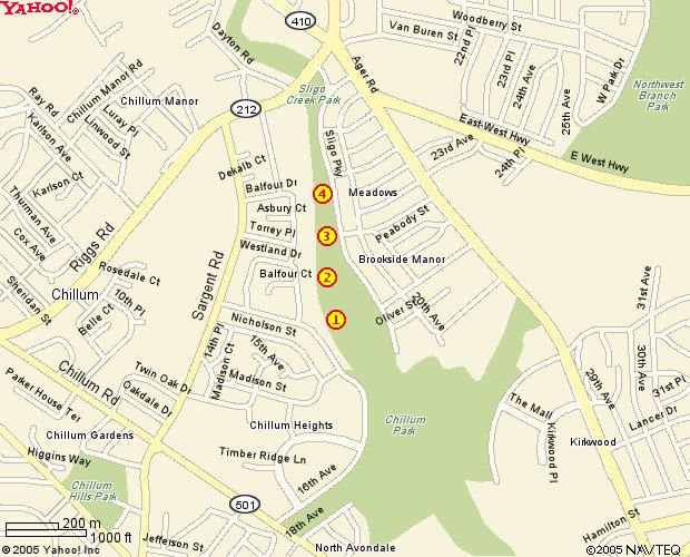 From 2003-2004, the Maryland National Capital Park and Planning Commission (M-NCPPC), through consultants listed under Maryland State Highway Administration Contract No. PG3445173, carried out improvements on four sites along the lower Sligo stream corridor between Riggs Road and the Sligo confluence with Northwest Branch. This was done as part of the Wilson Bridge Project Environmental Initiatives.