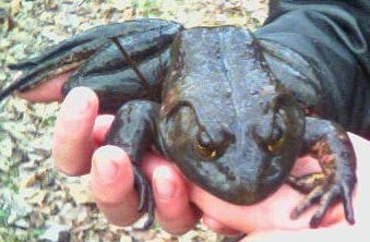 Bullfrog (Rana catesbeiana) seen at foot of Crosby, near Dallas Ave, 3/30/05 |