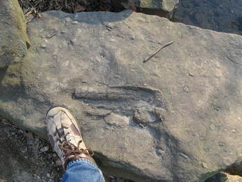 We started at a wide, flat rock emerging from the lawn behind the bus stop at the corner of Maple and Sligo Creek Parkway. This rock's grayish color and lumpy texture says a lot about its makeup and origins that we learned along the way.