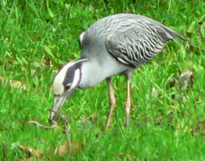 June 13. Gobbling up a large earthworn. This spring was very rainy and thousands of worms were forced to the top of the soil. It was a bonanza for the night herons nesting along Sligo Creek. |