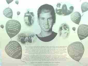Her other love was children. Because classes at Good Counsel had become a challenge, a special curriculum allowed her to go to St. Andrews Elementary School to work and play with the preschoolers. Becca's story was followed by the Washington Post. (The balloons are quotes from people who wrote the Post, describing how Becca had touched them.) While she enjoyed the fame, it never affected her. She lived with great love, embodying the saying, "Be all you can be." Her tenacity, spirit, and courage remain examples for us all.