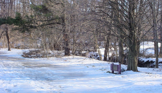 This plaque was placed in 1983 across from the Golf Course, in front of a handsome swamp cypress tree. It is slightly upstream from the soccer field bridge, on the edge of the soccer field. The tree is one of ten or so planted by the Park in perhaps the 1950s.