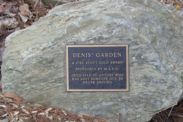 A niece of Denis later wanted a Girl Scout Gold Award project, and conceived the idea of a garden near the benches. It was built in 1998 with money contributed by the local chapter of MADD. The family makes a small contribution for changing flowers in pots and keeping the garden trim.