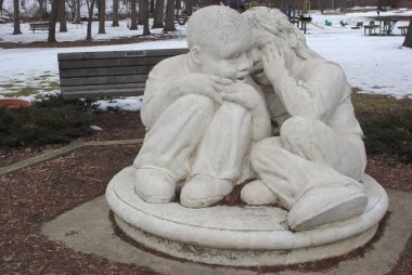 | Whispers was purchased by M-NCPPC from artist Steven Weitzman, in about 1972. Weitzman, born in New York, lived in Takoma Park for a time. He is known for large-scale public works, which include the sculpture at the National Zoo entrance on Connecticut Avenue and the indoor sculpture of tree-tending in the Judicial Center Building, Rockville. | |||||