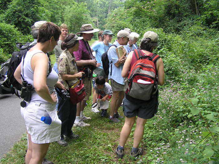 Twelve adults and three kids poked around the sunny edges of lower Sligo Creek Park, guided by Frank Boyle, who leads butterfly counts as part of the annual census conducted by the North American Butterfly Association. Before we set out, co-leader and ecologist Rhonda Kranz provided some background on pollinators and talked about Pollinator Week, being observed nationally. She noted the posting of a special selection of pollinator information on the Friends of Sligo Creek website and then we all went looking for pollinators in Sligo.