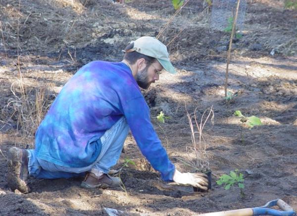 Ross Campbell planting Andropogon grass.