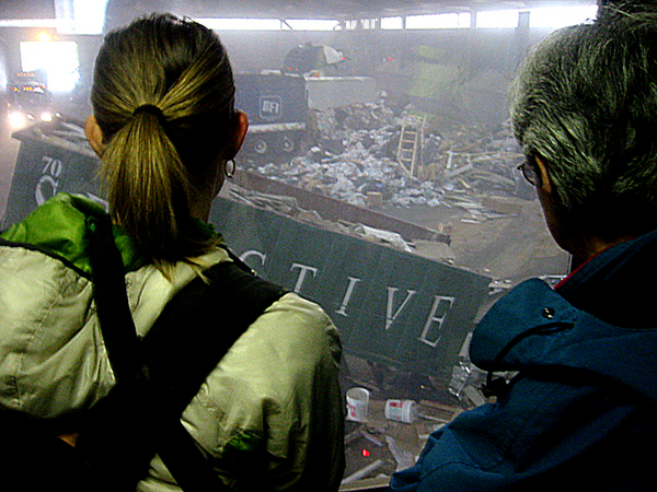Members of Friends of Sligo Creek share a birds-eye-view of the tipping floor, where non-recyclable trash is dumped before incineration or transfer to the landfill.