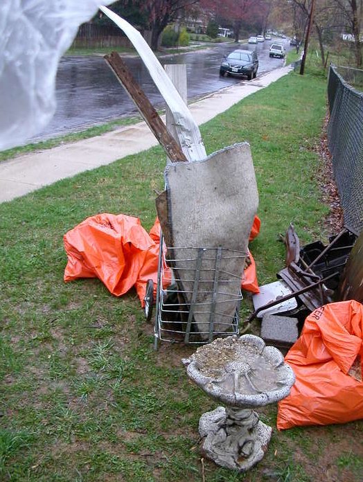 Some of the large items hauled out from behind the Kensington/Forest Glen Children's Center by Megan Lang, Olivia Lindly, and Bruce Sidwell