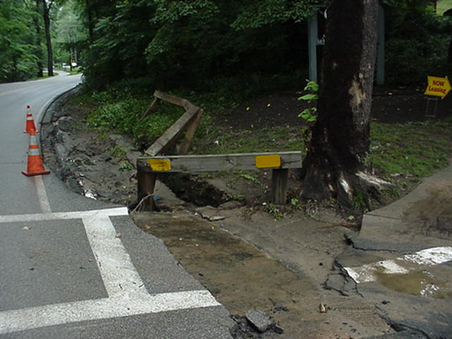 The creek flowed over the road and pulled 6x6 posts up like match sticks.